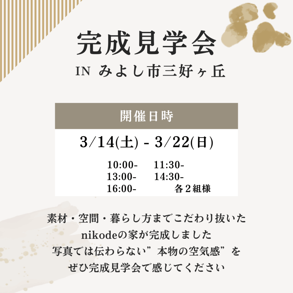 3/14(土)-22(日) 愛知県みよし市OPEN HOUSE